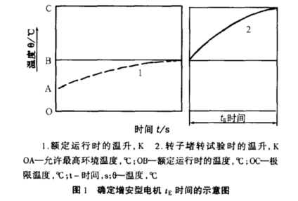 首先需要讓大家先了解什么TE時間的定義:TE時間是指在最高環(huán)境溫度下達到額定運行最終穩(wěn)定溫度后的電機繞組,從開始通入最初啟動電流時計起直致繞組溫度上升到極限溫度的時間。如果定義不好理解的話,可通過下圖來了解其定義和說明。如圖1所示