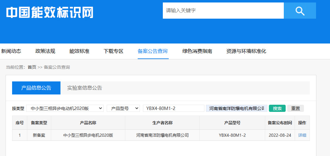 客戶收到電機后,可根據(jù)以下截圖去中國能效標識網(wǎng)(https://www.energylabel.com.cn/)查詢電機能效或者根據(jù)電機上能效標識二維碼掃描識別。備案號:20220824-751200-04047244547654505 備案號:20220824-751200-07684690956425155 備案號:20220824-751200-07684690956425155