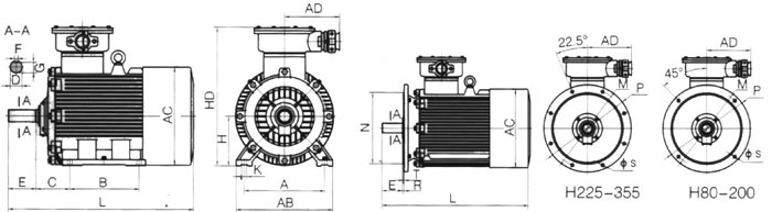 YBK2(YBK3)系列煤礦井下用隔爆型三項異步電動機主要使用在采掘面以下,視為煤礦井下采掘工作面機械設計的專用電機,機座有鋼板焊接形成,風罩,接線盒、絕緣結(jié)構(gòu)采取加強措施。YBK2系列煤礦井下用隔爆型三項異步電動機按GB3836.2《爆炸性氣體環(huán)境用電氣設備 第2部分 隔爆型“d”》的規(guī)定,制成隔爆型,防爆標志為“Exdl”。主要用于煤礦井下惡劣工作環(huán)境。YBK2系列煤礦井下用隔爆型三項異步電動機除機座、風罩、接線盒有特殊要求外,其余如果氣體性能、安裝尺寸、額定功率等均與YB2系列電機相同。