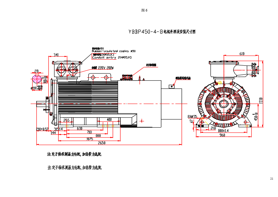 2、強迫通風(fēng)用小電機(冷卻方式為IC416時)所用電源條件為額定電壓380/660V或660/1140V,額定頻率50Hz的獨立三相交流電源。