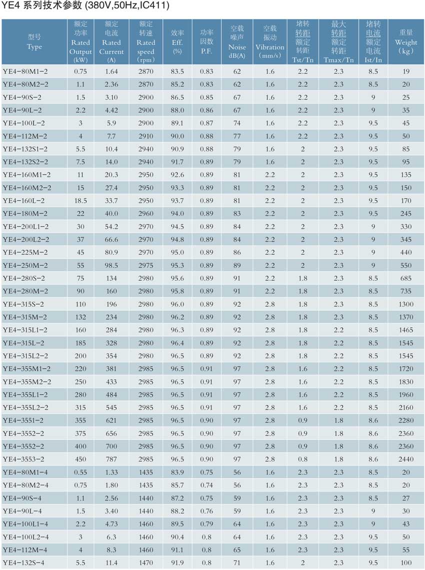 YE4系列三相異步電動機采用新材料、新工藝及優(yōu)化設(shè)計而制造的全封閉自扇冷鼠籠式三相異步電動機,是高效節(jié)能型電動機,符合國標GB 18613-2020 《電動機能效限定值及能效等級》二級能效等級。YE4系列電動機具有起動轉(zhuǎn)矩大、噪音低、振動小等特點,同時具有效率高、防護等級高、溫升裕度大,運行安全可靠等優(yōu)點,節(jié)能效果明顯。用于驅(qū)動機床、風(fēng)機、水泵、壓縮機、攪拌機、包裝機械、建筑機械等各類機械傳動設(shè)備,適用于工業(yè)、農(nóng)業(yè)、國防、化工、石油、運輸、食品、醫(yī)藥等各個領(lǐng)域。