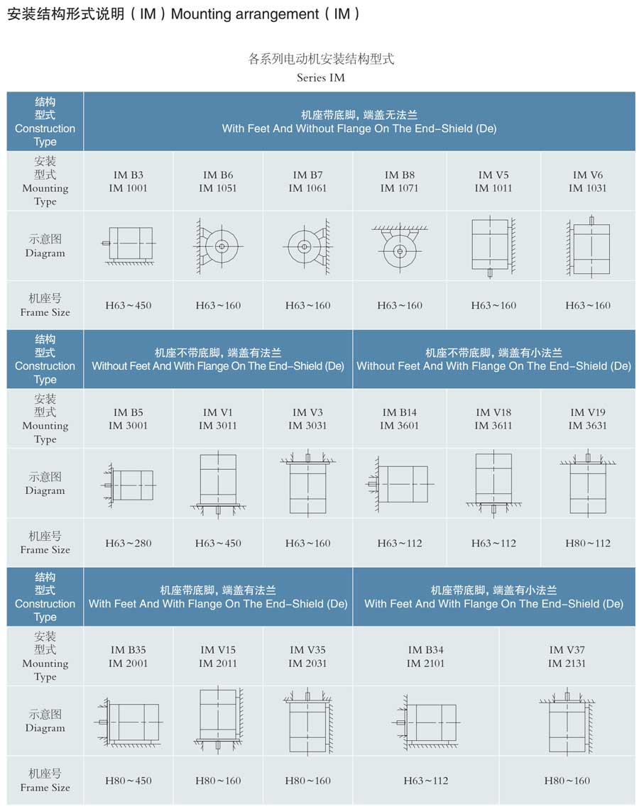 4.機座號225及以下采用封閉軸承,225以上帶有再潤滑結(jié)構(gòu);